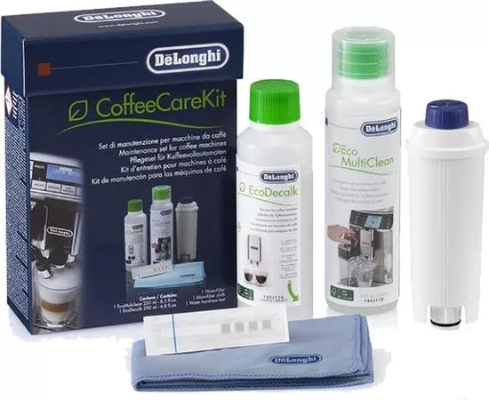 A készlet része egy DLSC002 vízszűrő patron is, amely csökkenti a víz keménységét és kiszűri a kellemetlen ízt okozó klórt, így a kávé aromája tisztább lesz. A tejrendszer tisztításáról az Eco MultiClean folyadék gondoskodik, amely hatékonyan távolítja el a tejzsírt és a fehérjéket a gőzcsőből vagy a tejtartályból, megelőzve a baktériumok elszaporodását és a dugulásokat.