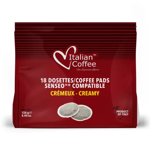 Az Italian Coffee Creamy (vagy olaszul Crémeux) kávépárna azoknak készült, akik a reggeleiket egy határozott, ébresztő erejű kávéval szeretik indítani. A 40% Arabica és 60% Robusta szemek precíz keveréke garantálja azt a magas testességet és sűrű állagot, amit egy klasszikus olasz presszókávétól elvársz.